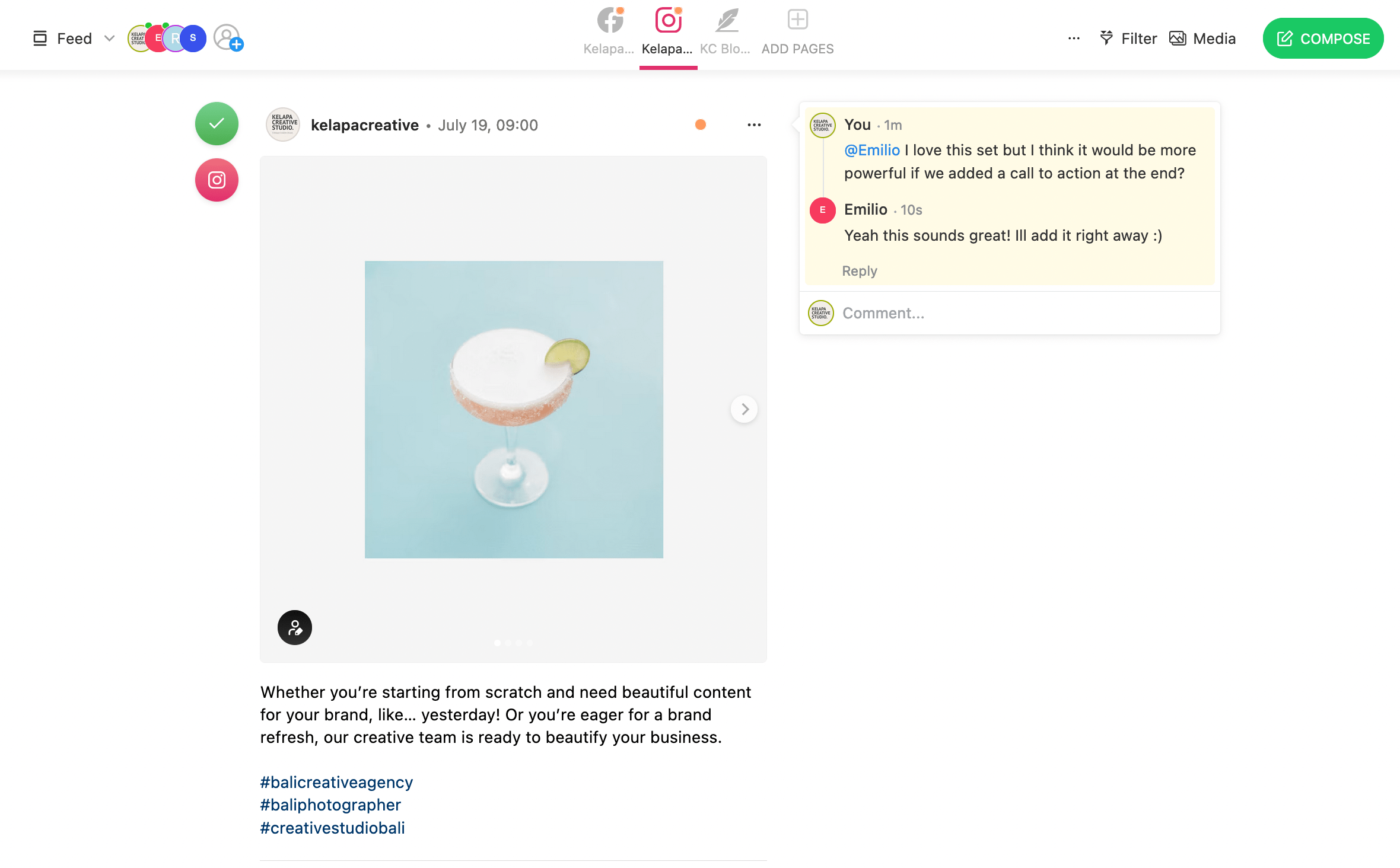 Having run a creative agency for over a decade, we’ve tried every trick in the book to streamline our social media management operations. Over the years, we’ve experimented with just about every scheduling tool on the market (including Later, Hootsuite, Buffer, Planoly, Unum and Sprout Social), each promising to be the solution to our challenges. And while many of these tools came ‘really, really close’ to being exceptional, there was always a caveat.