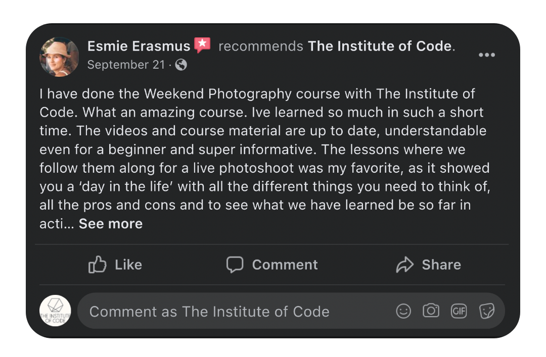 Ready to take your business to the next level, attract your dream clients and streamline your operations? In our business bootcamps, that's exactly what you'll do. These courses are for photographers or web developers who already have the technical skills and want to now master the business side of things, get in the flow doing creative work they love, and scale to $10k months and beyond.