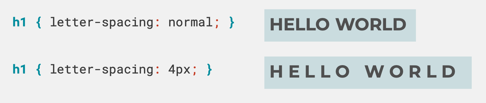 The letter-spacing property allows you to change the gap between each character. This is often done with px because you only want a small space in between letters.