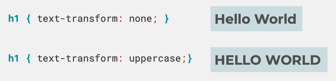 This might seem pointless if you’re just at the beginning of your project but will save tons of time when it has grown. Let’s say you have a client with a 100-page website and you were asked in the initial brief to make every single heading uppercase. Then 2 months later, they hired a new designer who convinced them to change all headings into standard capitalization and asked you to do it. If you do this manually it would’ve been a pain, but with the text-transform, it’s easy to do that in one click.