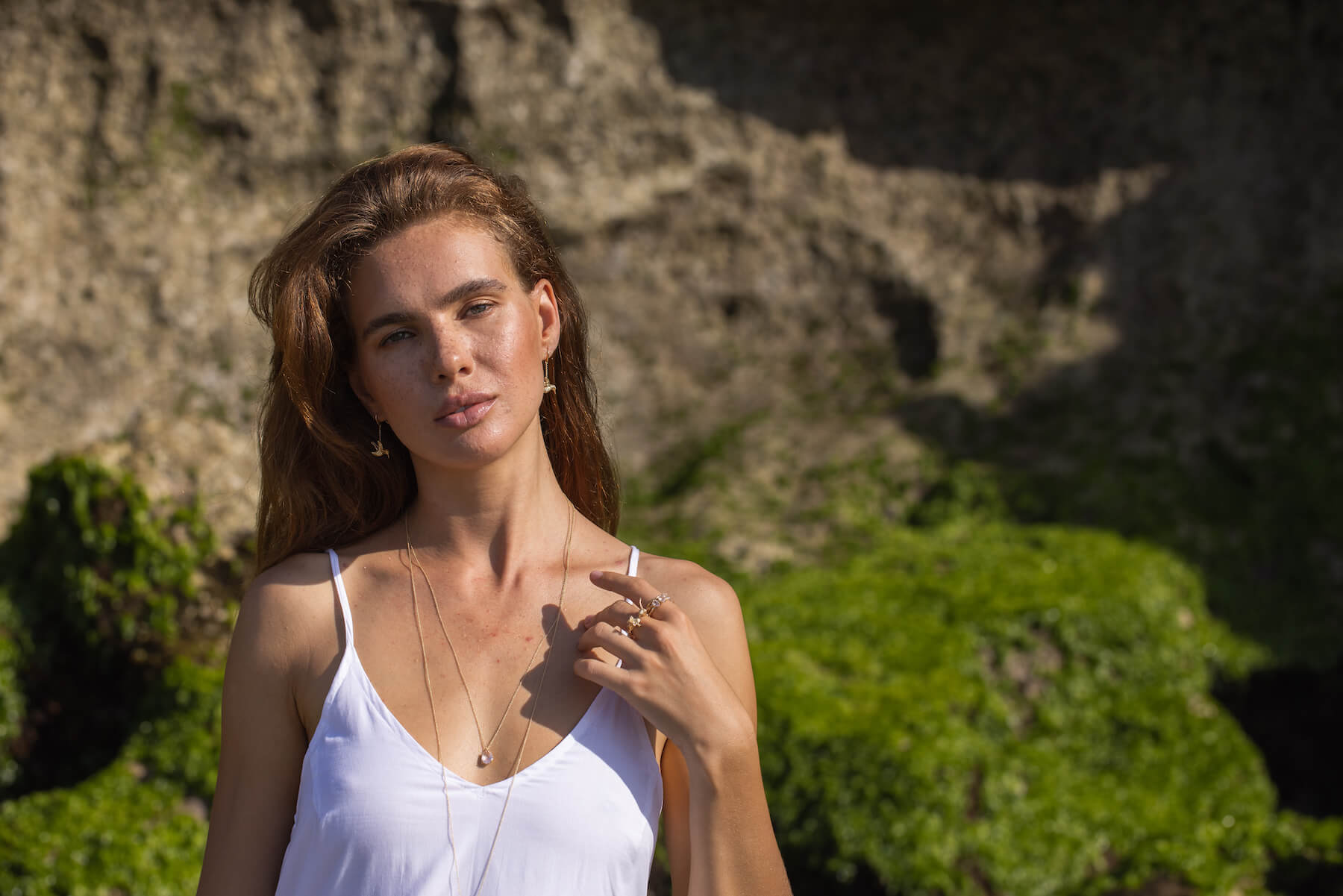 Here we’ve got our first image, and if we zoom in just a little bit, we can see that she has a few sort of pimples and discoloration up on her chest. That said, we’re not going to tackle her face as it’s a completely different ball game and quite hard to get 100% correct. So it’s just a matter of looking at the image and asking yourself if it’s really that important to remove something or if it’s fine to just leave it as it is.