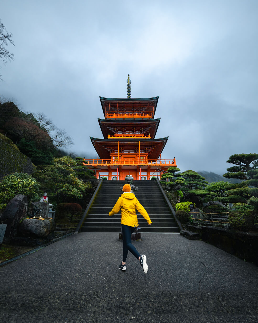 - We want to make sure that the pagoda and our subject are in the dead center. So let’s hover onto one of the corners and the cursor will change into a rotating icon. Rotate the image and decrease the crop area with the help of the grid lines to make sure that the pagoda spire is exactly at the center. Once you’re satisfied with how it looks, press Enter.