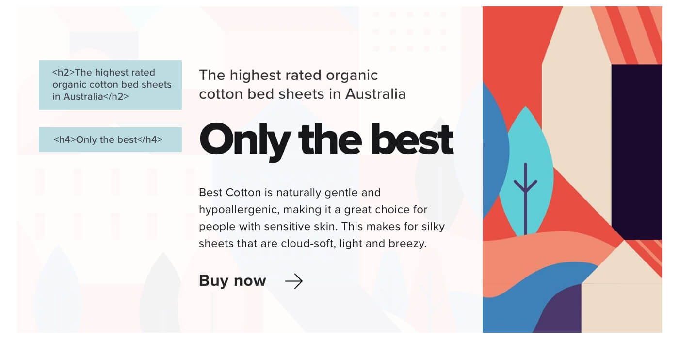 If you don’t want to have long SEO optimised headings throughout the page, a more effective technique is to use a mix of headings and subheadings where the bigger headings have the short snappy catch phrase: